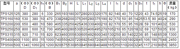 | TPS | 第一系列 | 125 | — | 160 | — | 200 | — | 250 | — | 315 | — | 400 | — | 500 |
